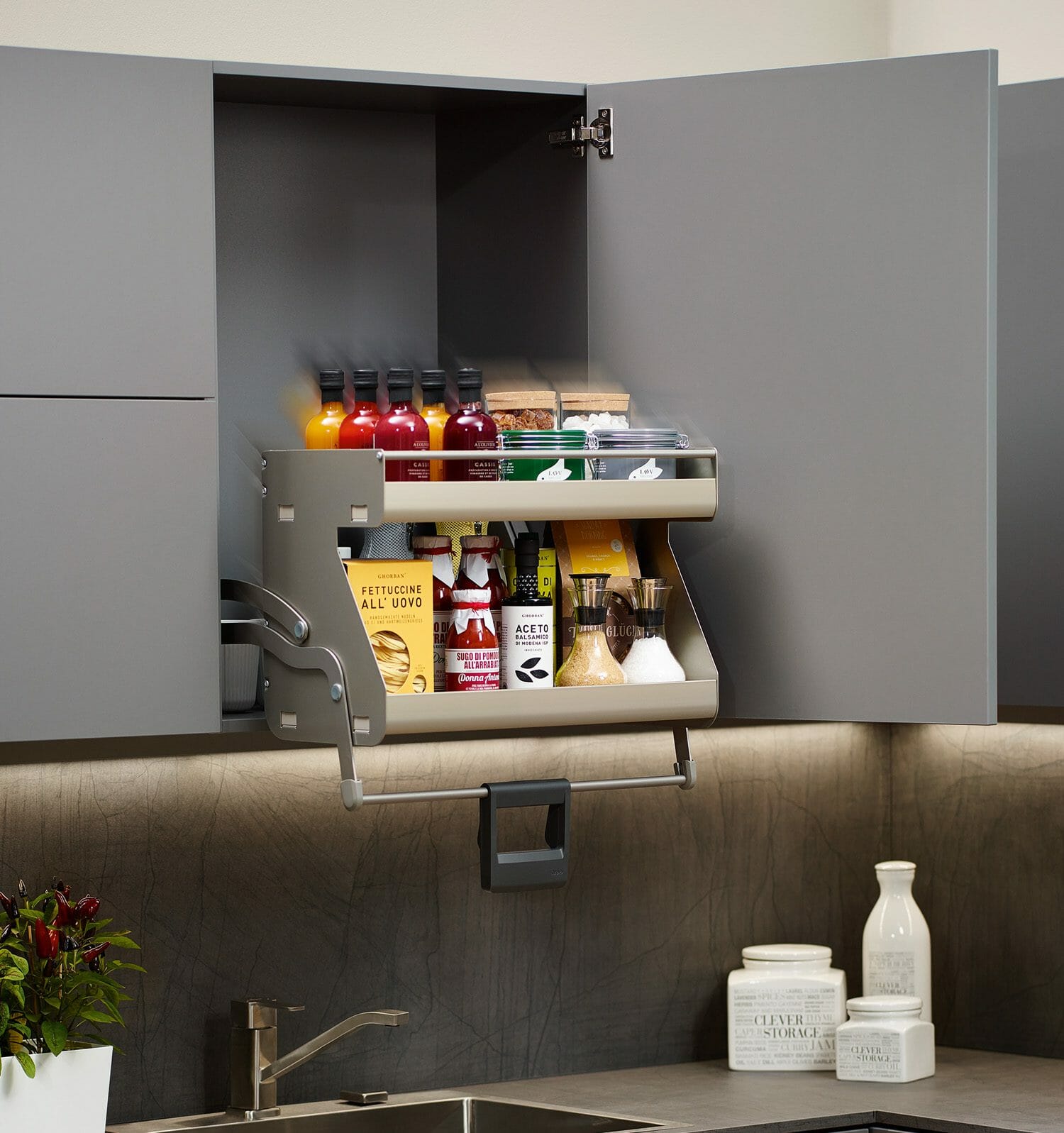 Normally, a big portion of the space in the corner cabinet is hardly accessible, however with modern storage solution systems, the accessibility and functionality of that corner space increases significantly, making the use of every inch of your kitchen easily accessible and pleasant, providing easy, fluid reach and full object visibility. These corner cabinet systems include great features such as anti-slip shelves, adjustable shelving racks, a soft close mechanism, and motion gliding.
