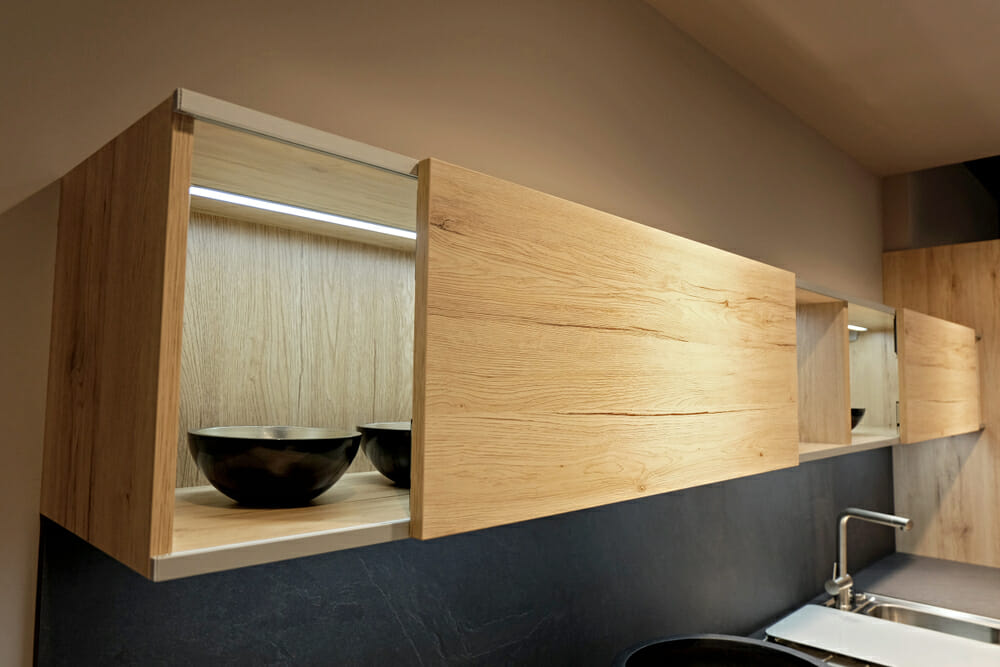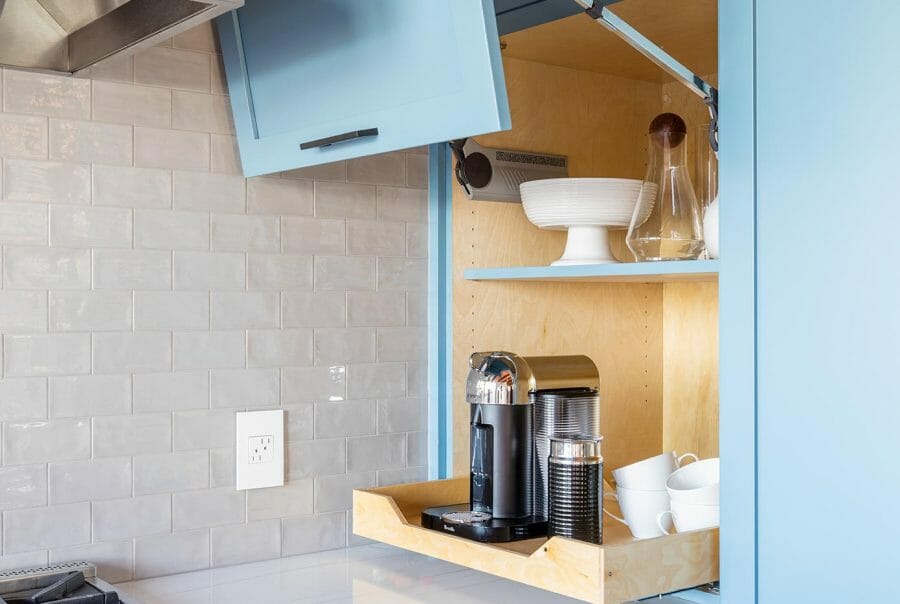 A vertical sliding system is a great way to conceal the components inside your cabinets wherever you want easily. It is a vertical runner system that conveniently takes up little to no space and seamlessly moves the door up and down, allowing you to access your cabinet objects whenever you need them easily.