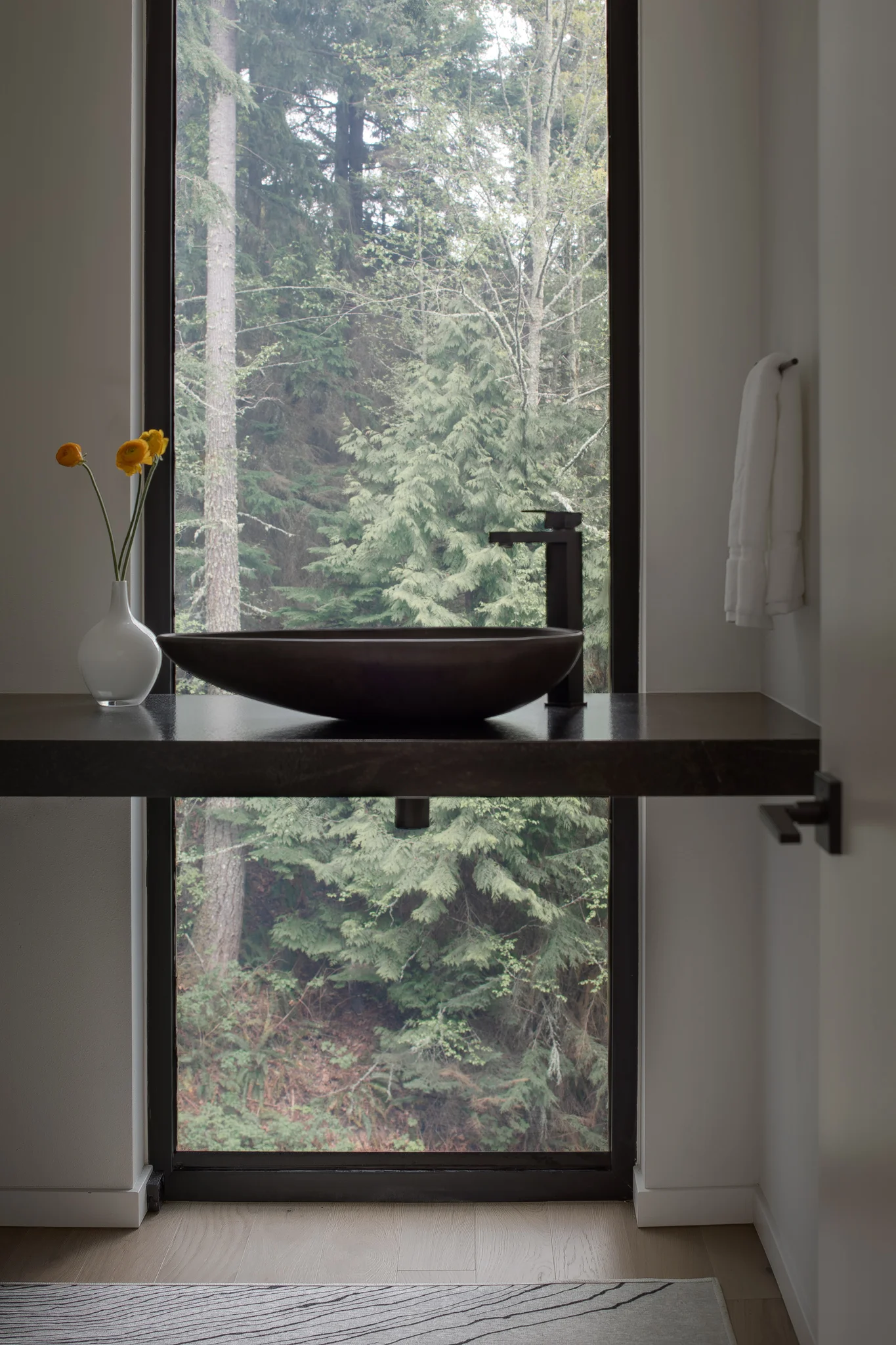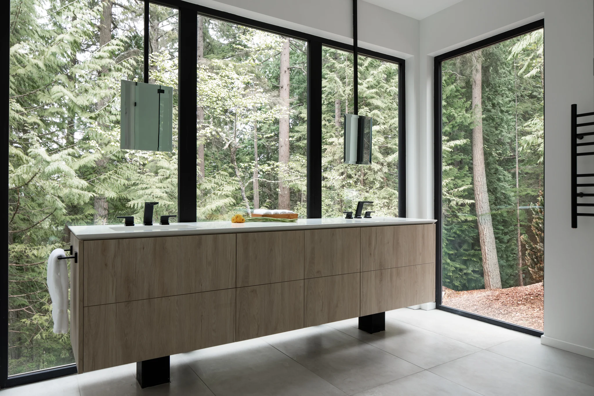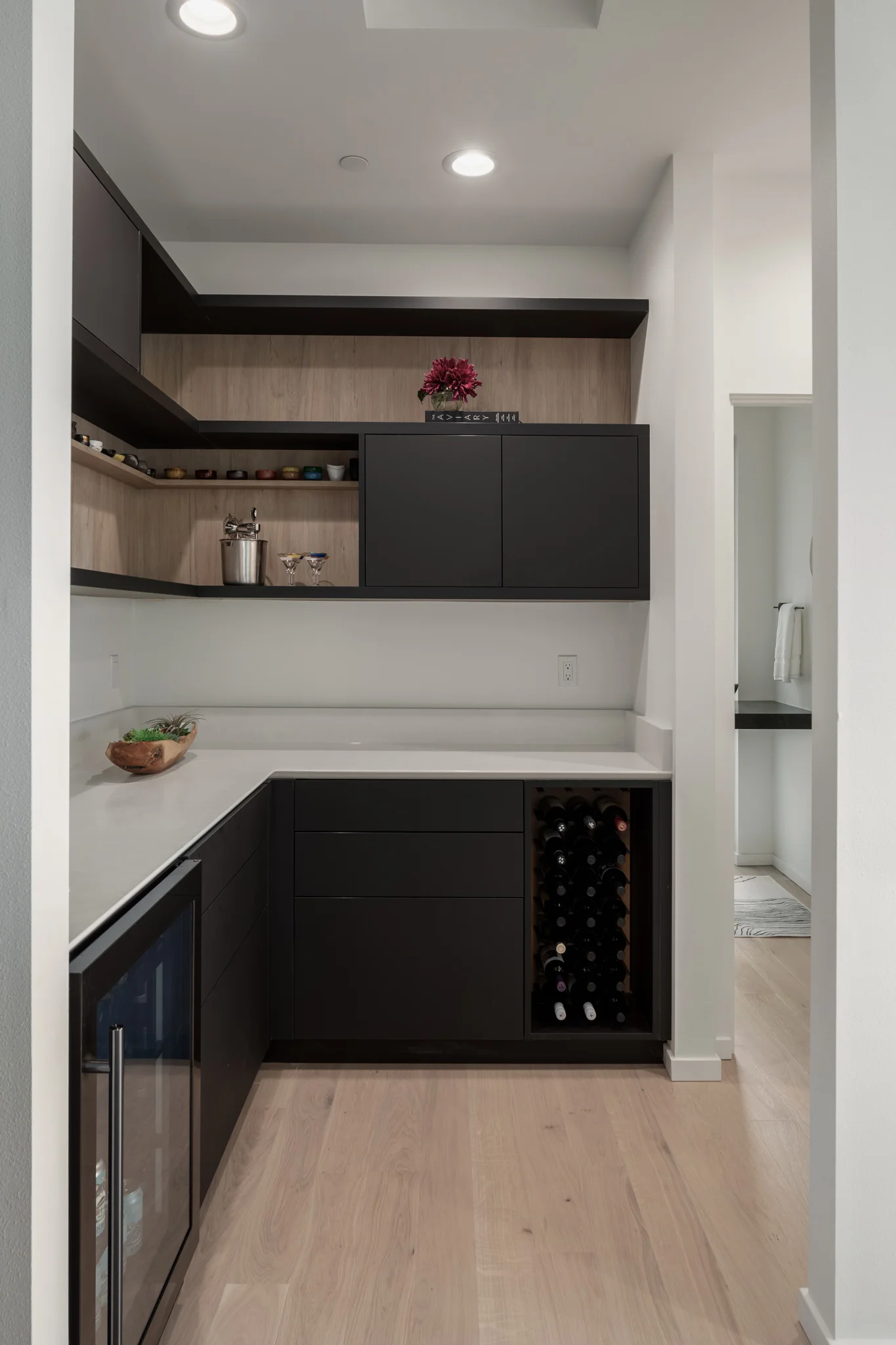 Located along the scenic byway in Bellingham, this modern kitchen features Acadia Craft’s custom cabinetry, crafted with Fenix Super Matte in black for a sleek, sophisticated look. The Fenix material’s fingerprint-resistant, scratch-resistant, and anti-glare properties make it perfect for high-end, functional design. This project showcases Acadia’s ability to deliver modern, custom cabinets that not only elevate aesthetics but also offer long-lasting durability and practicality.