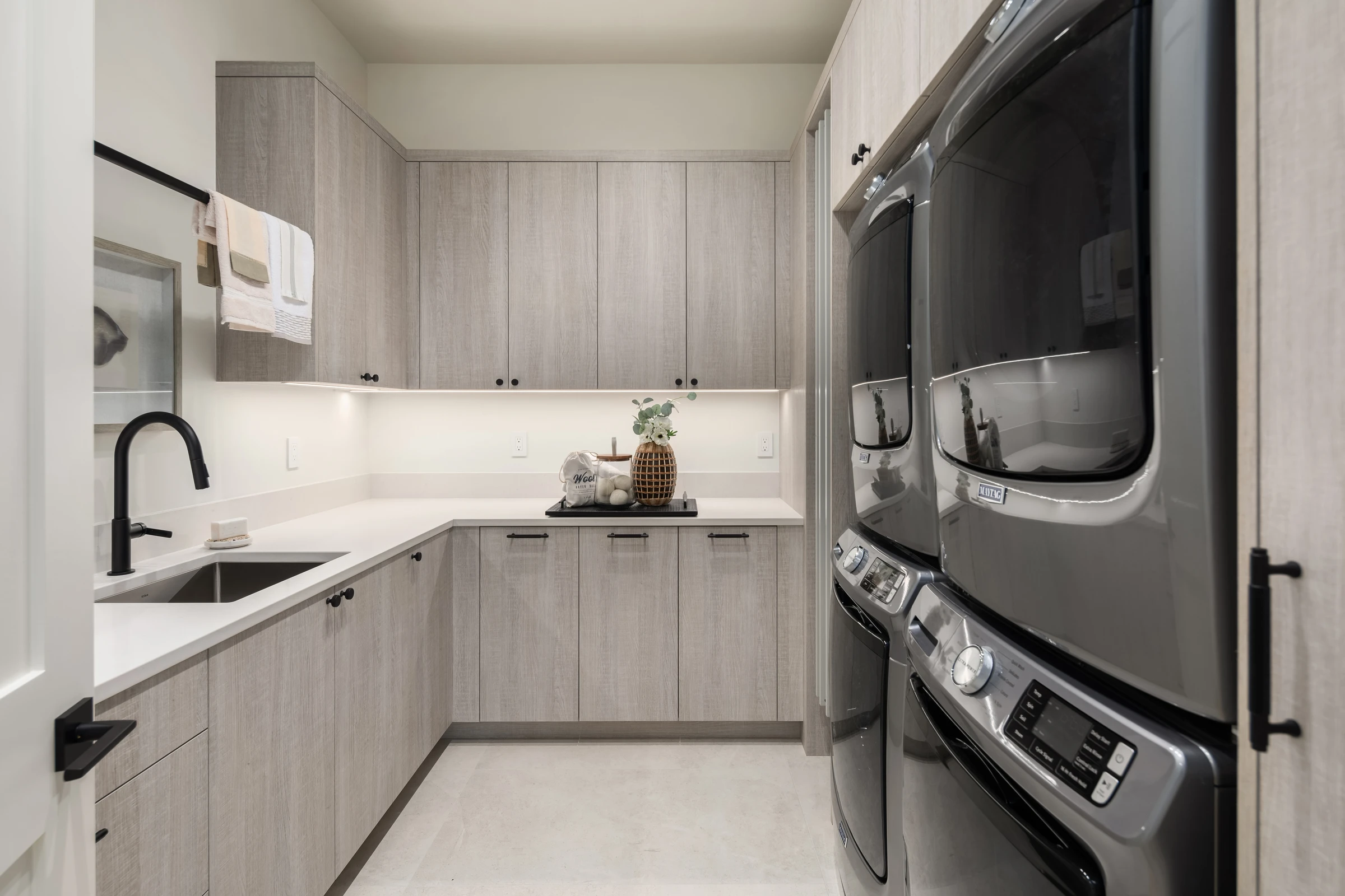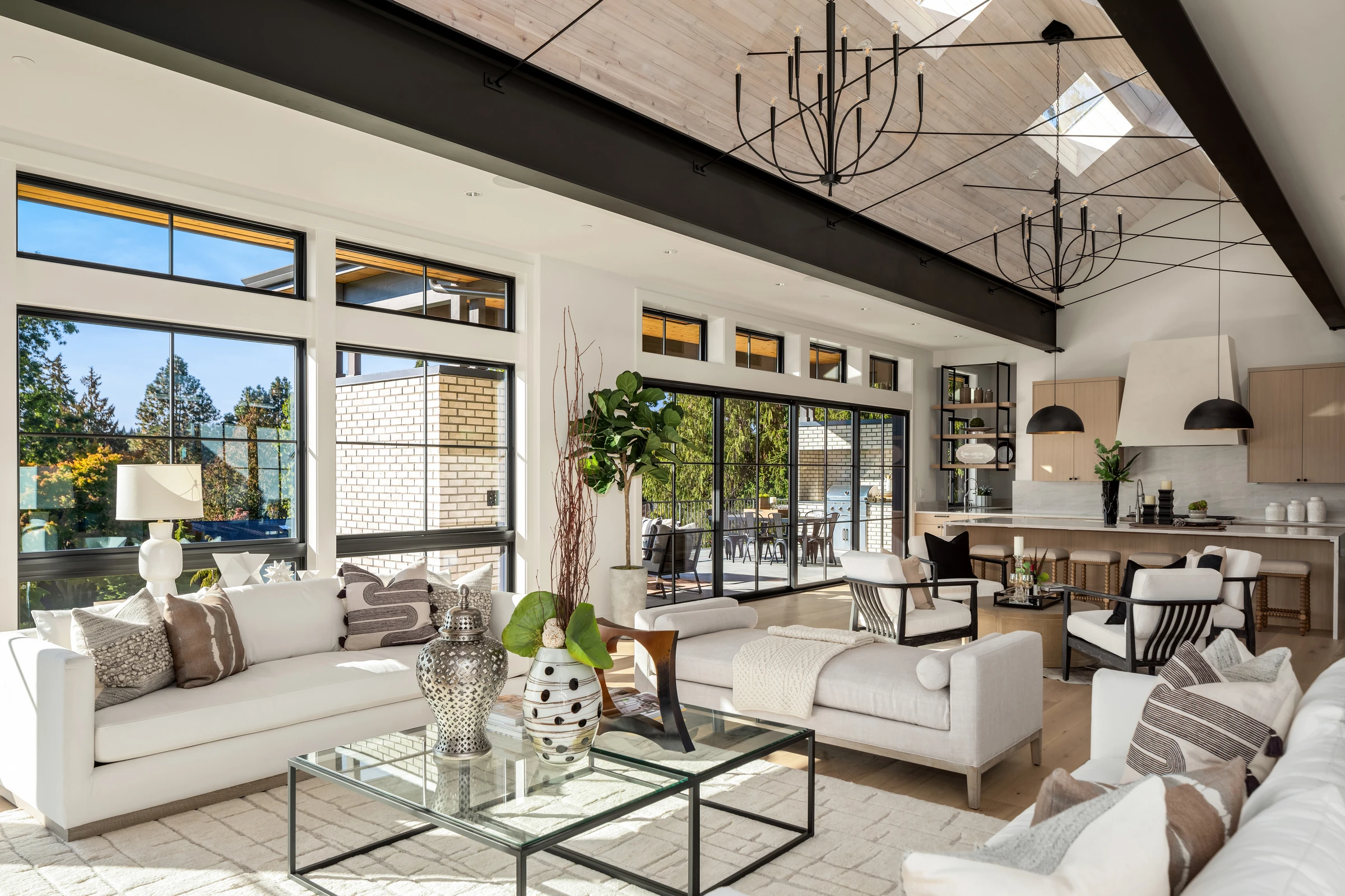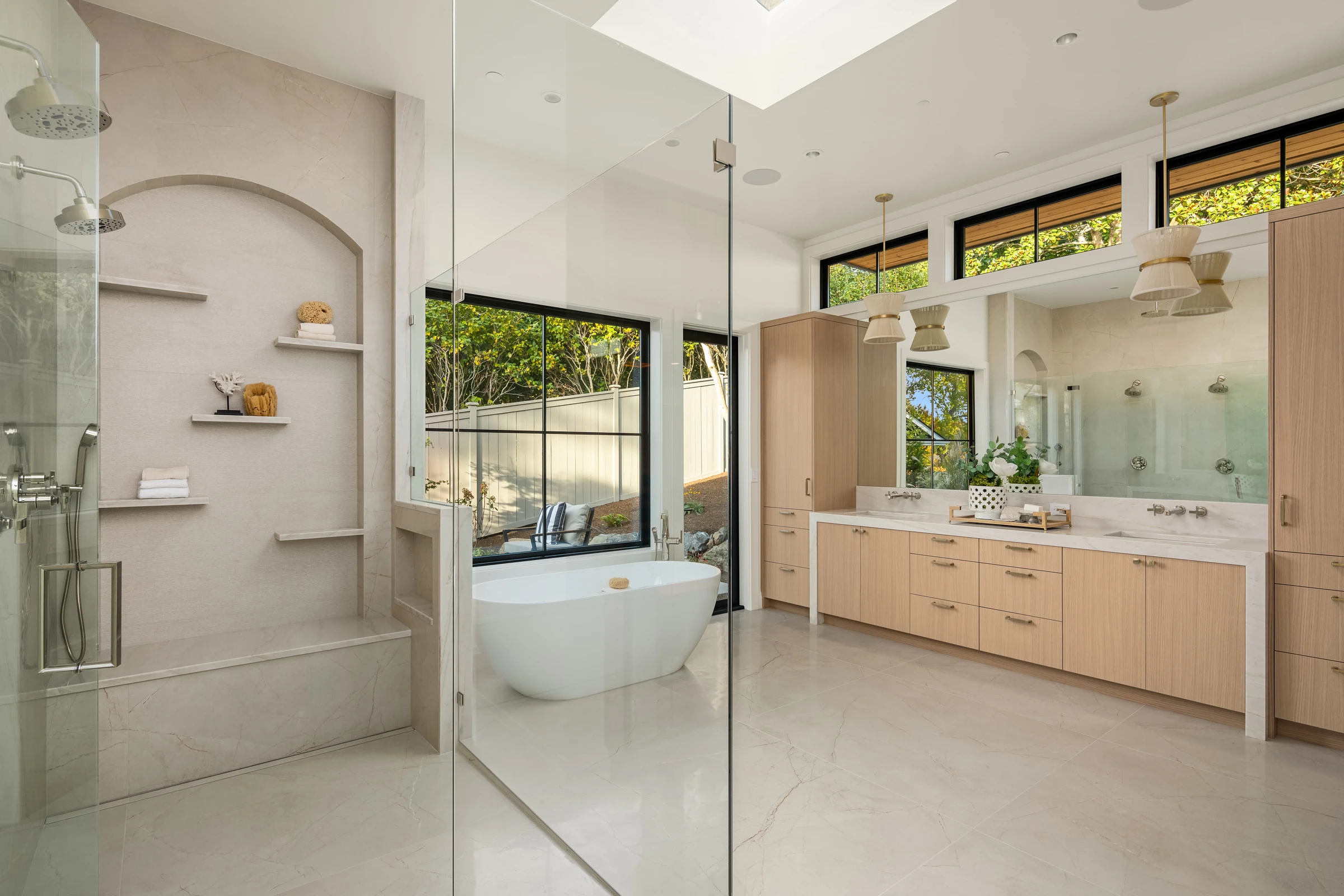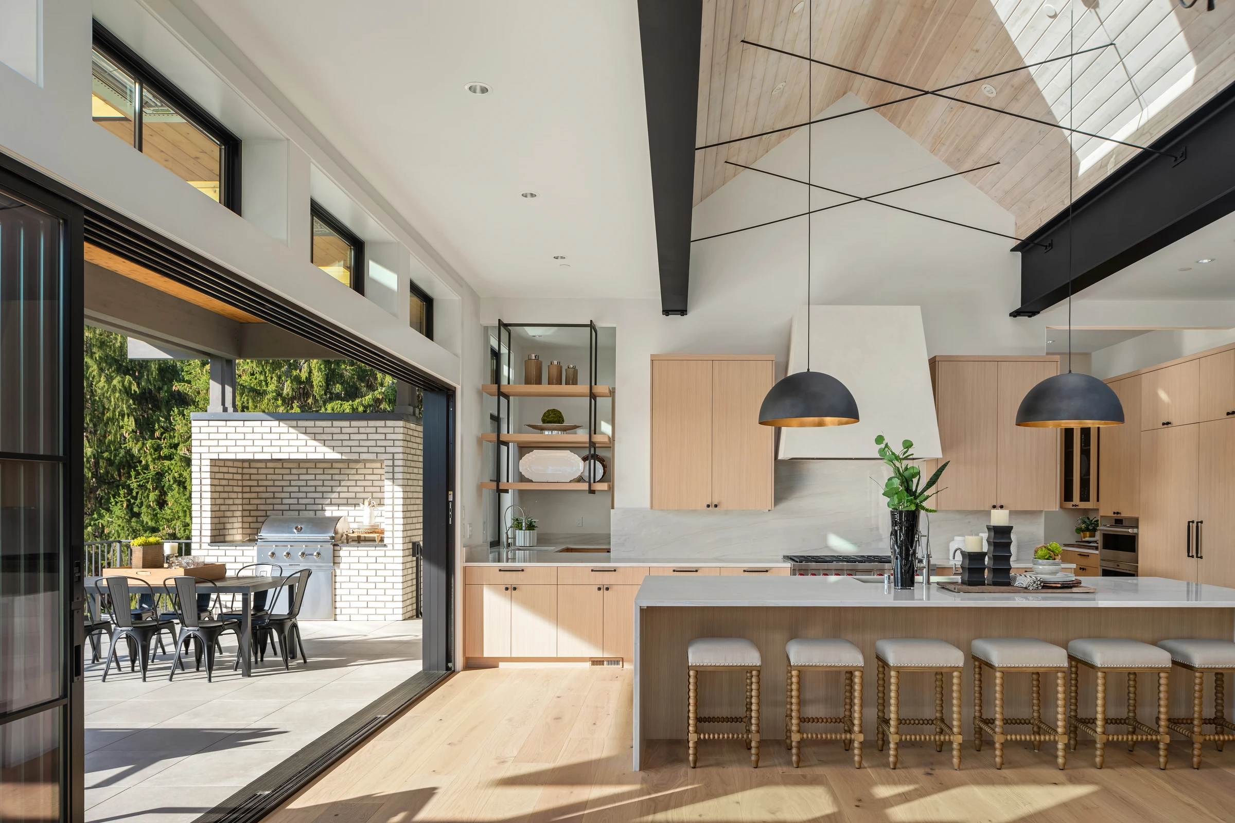 This Clyde Hill residence exemplifies Acadia Craft’s commitment to modern design and superior craftsmanship. The kitchen features sleek, flat-panel cabinetry in a warm wood finish, complemented by minimalist hardware and clean lines. Integrated appliances and a spacious island enhance functionality while maintaining a streamlined aesthetic. The open-concept layout, paired with large windows, allows natural light to flood the space, highlighting the meticulous attention to detail and high-quality materials used throughout. This project showcases our ability to blend form and function, creating a kitchen that is both beautiful and practical.