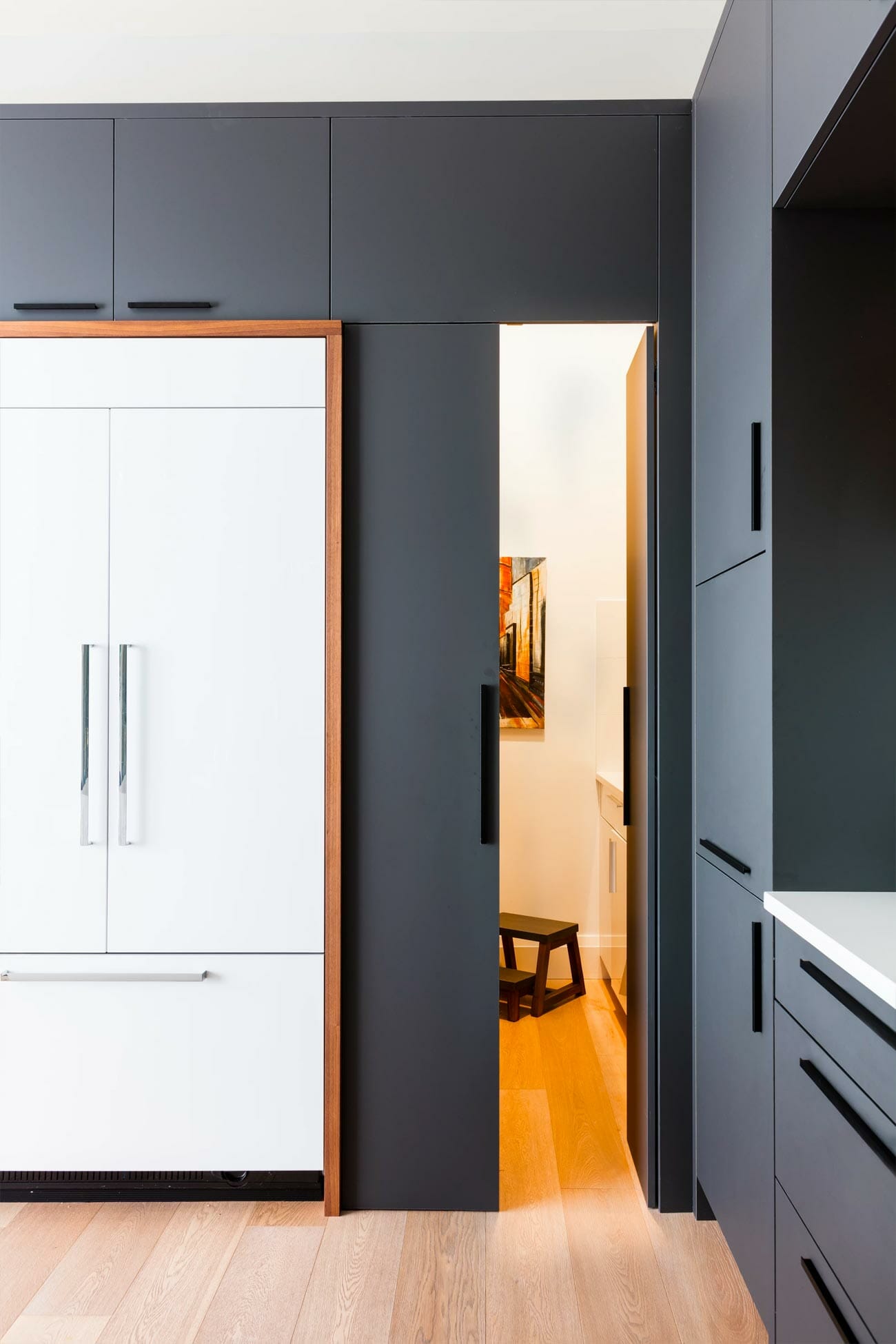 Our cabinets tied in seamlessly with the continued “L” shaped corner, featuring a concealed closet pantry door. The clients couldn’t wait to use their new kitchen that catered perfectly to their unique lifestyle.